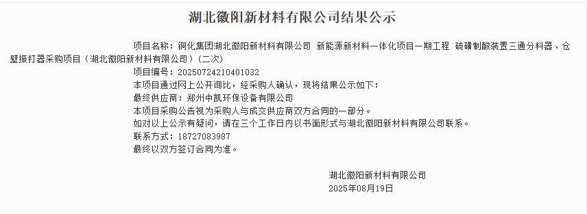 湖北徽陽新材料有限公司[三通分料閥設備采購項目]和[硫磺制酸裝置三通分料器、倉壁振打器采購項目]~從初次磨合到默契十足,這份信任是最好的勛章,未來繼續(xù)并肩創(chuàng)佳績!